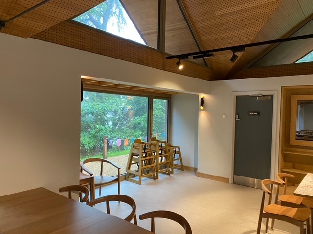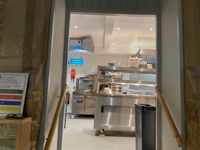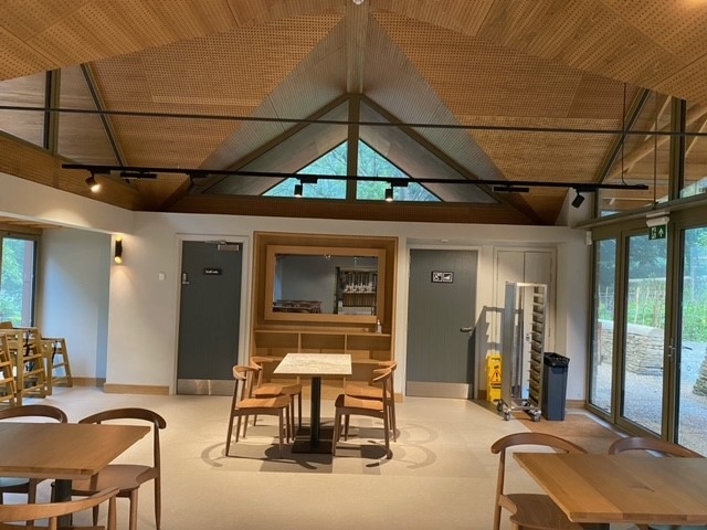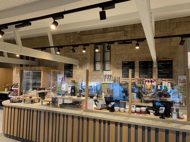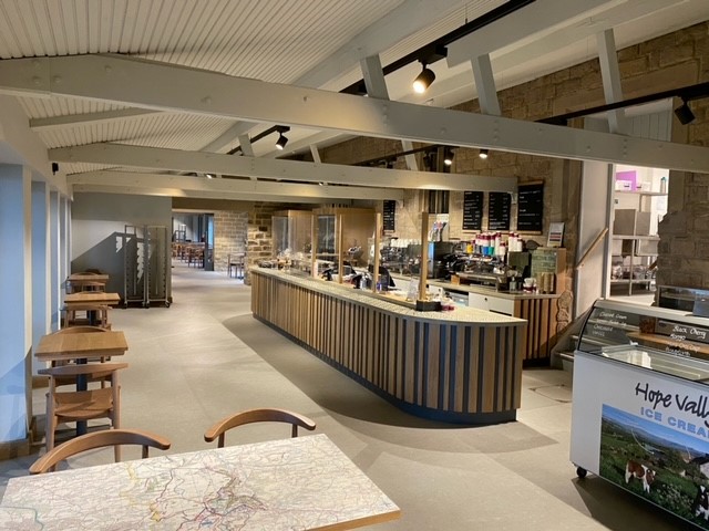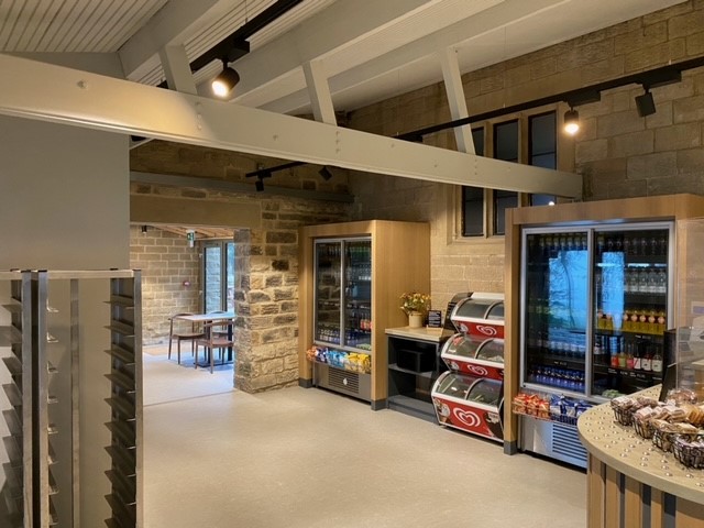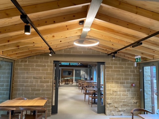 This modern café is in a converted barn so the electrics had to be designed from scratch. Cooking and seating area lighting and electrics as well as all the wiring for the multiple refrigeration units.
