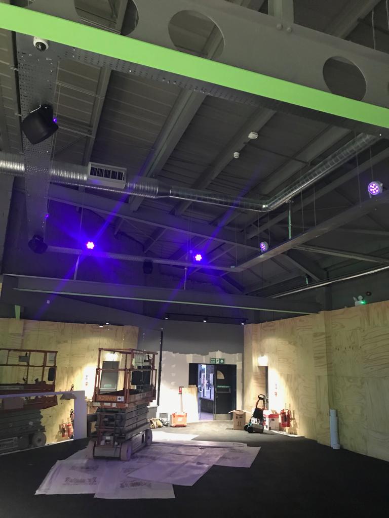Installation of the electrical and lighting systems in a modern refurbed gym
